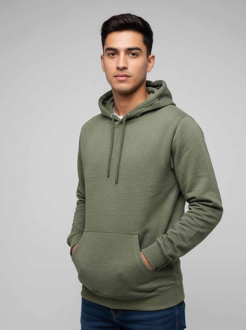Army Green plain Regular hoodie