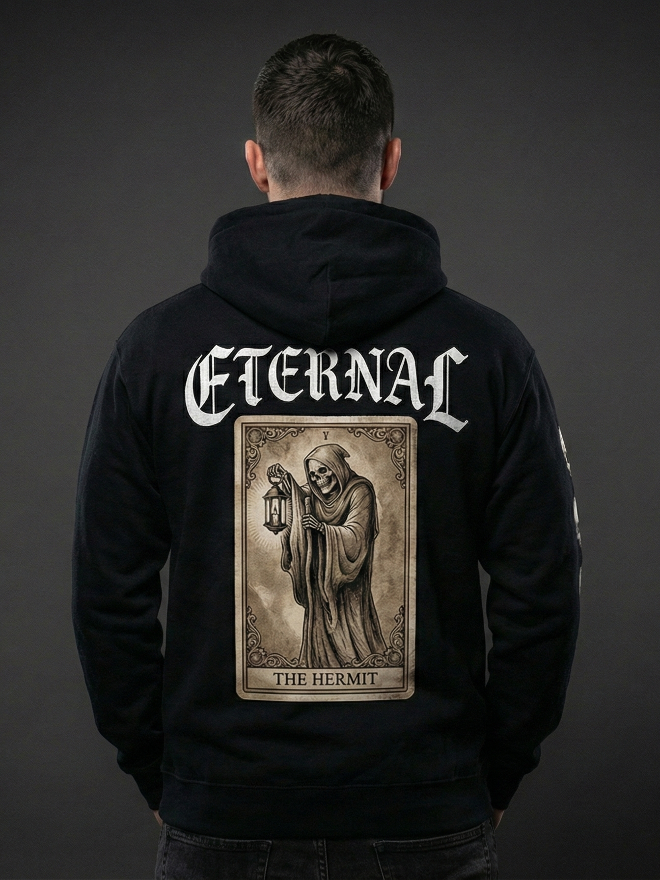 Black hermit printed dropshoulder hoodie